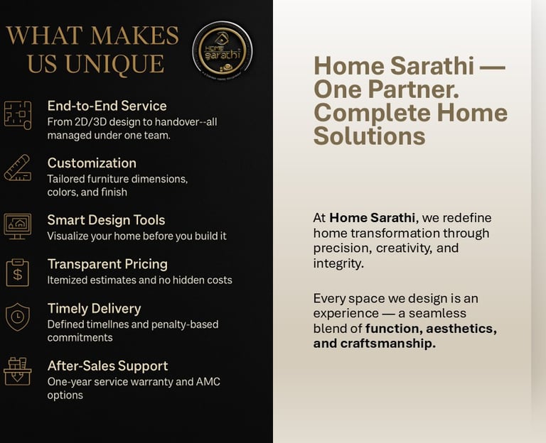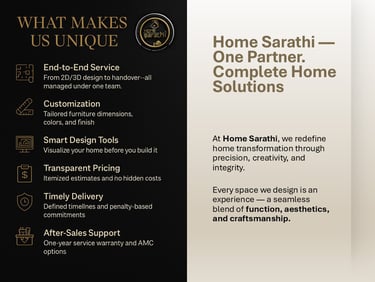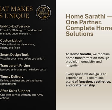 Home Sarathi is a one-stop solution for all your home-related needs in India. Whether it's home repairs, maintenance, renovations, interior design, or other household services, Home Sarathi connects you with trusted professionals to ensure convenience, quality, and peace of mind—all under one roof.