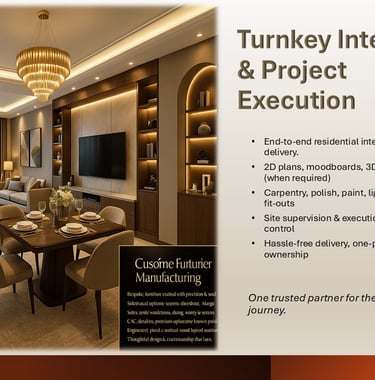 From modular kitchens to wardrobes and furniture installations, our team ensures every element of the interior project is executed with attention to detail and quality craftsmanship.
